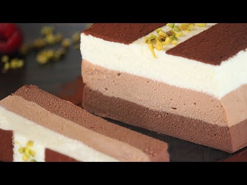 Triple Chocolate Mousse Terrine | How Tasty Channel - Terrine Dessert - White Chocolate Mousse, Milk Chocolate Mousse and Dark Chocolate Mousse combined to get an amazing and easy to make no-bake cake! This decadent ...