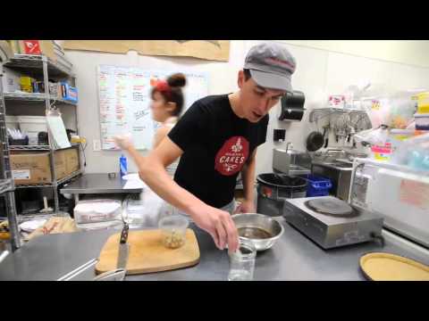 Banana Foster Pie }}- Jake Rosenbarger, of Kim and Jake's Cakes, makes a bananas foster pie.