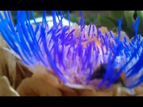 Blue Artichoke }}- Here a bee takes a liking to the nectar given by this artichoke flower with spikes of intensely blue petals. It's been a tough years for bees and vegetable growing ...