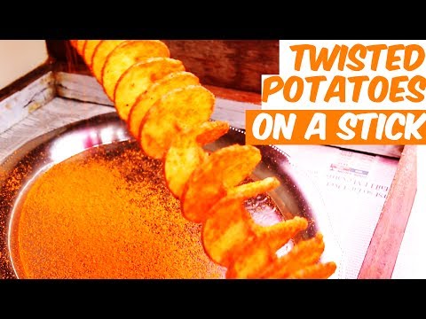 Indian Street Food - Amazing Twisted Potatoes On A Stick (Potato Tornadoes) - YUMMY - Twist Chips - Twisted Potato (Potato Tornado) is an innovative muncher served at select food places in Mumbai. The deep-fried twirls look like a golden potato ribbon curled ...